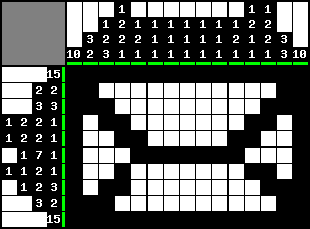 Obrazki Logiczne - łamigłówki polegają na zamalowywaniu pól w diagramie, zgodnie z cyfrową instrukcją znajdującą się po jego bokach. Efektem końcowym jest odkrycie zaszyfrowanego obrazka